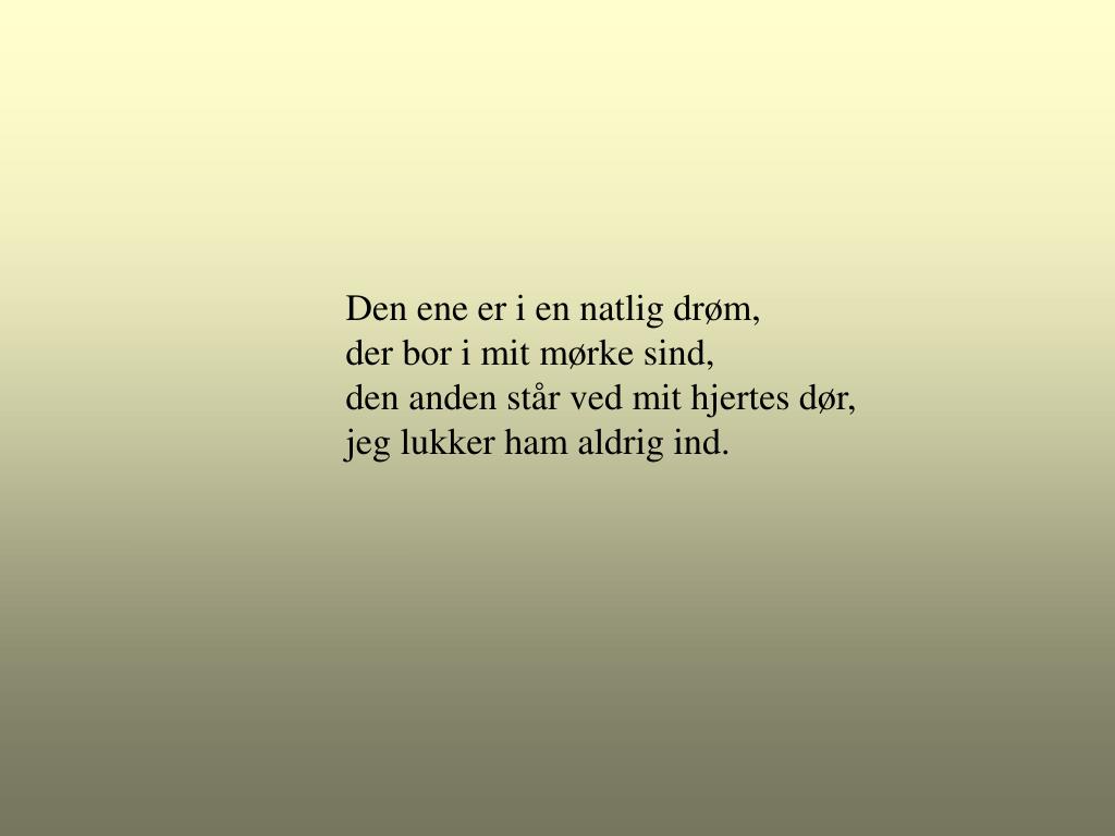 Den ene er i en natlig drøm, der bor i mit mørke sind, den anden står ved mit hjertes dør, jeg lukker ham aldrig ind.