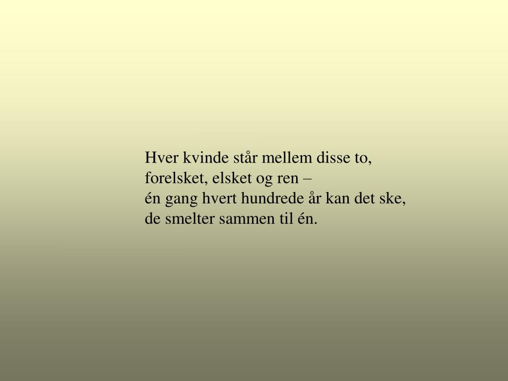 Hver kvinde står mellem disse to, forelsket, elsket og ren – én gang hvert hundrede år kan det ske, de smelter sammen til én.