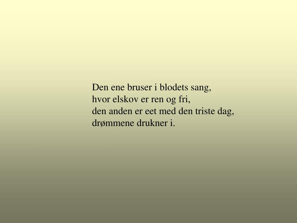 Den ene bruser i blodets sang, hvor elskov er ren og fri, den anden er eet med den triste dag, drømmene drukner i.