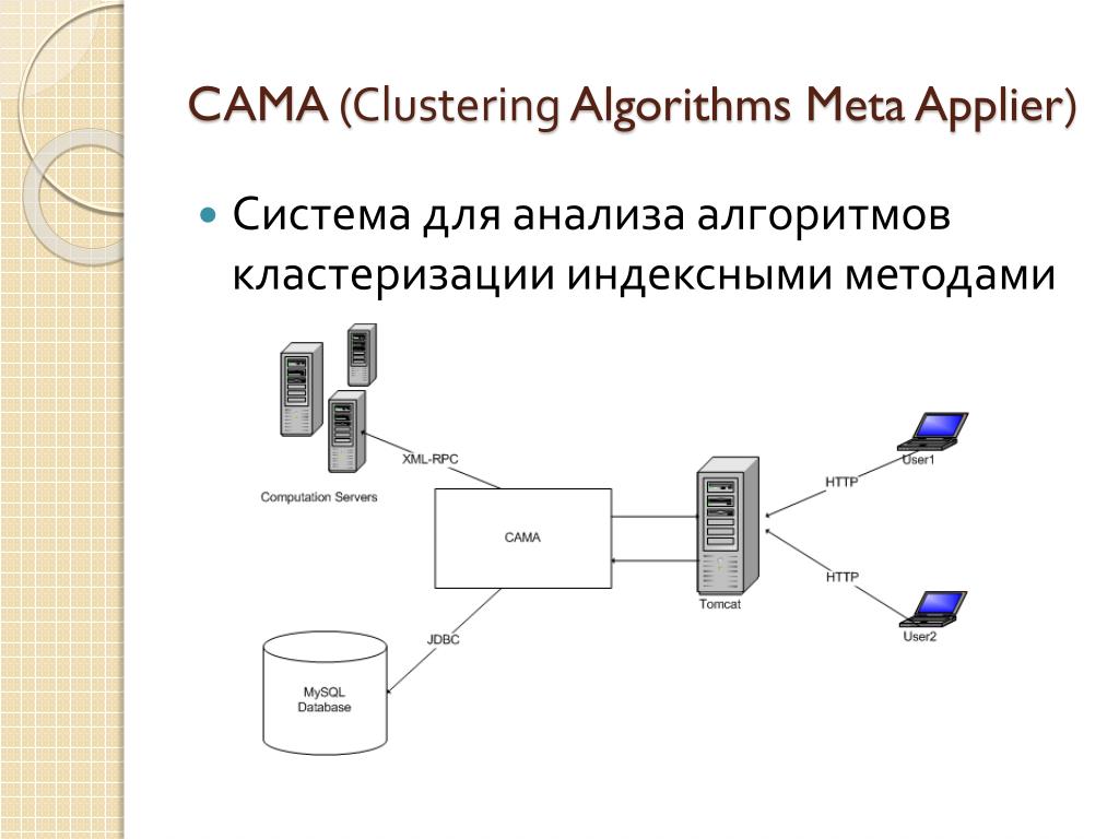 CAMA (Clustering Algorithms Meta Applier) • Система для анализа алгоритмов кластеризации индексными методами