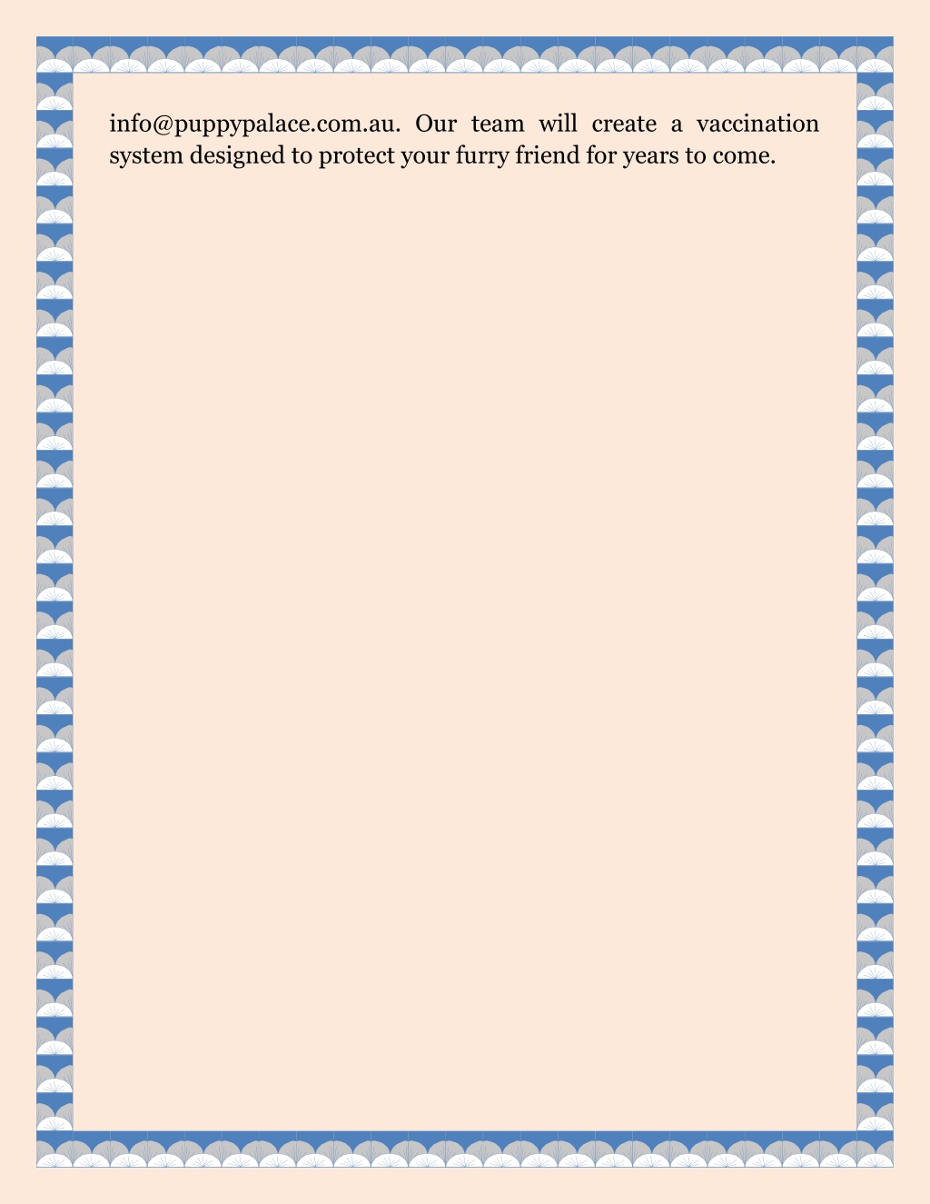 info@puppypalace.com.au. Our team will create a vaccination system designed to protect your furry friend for years to come.