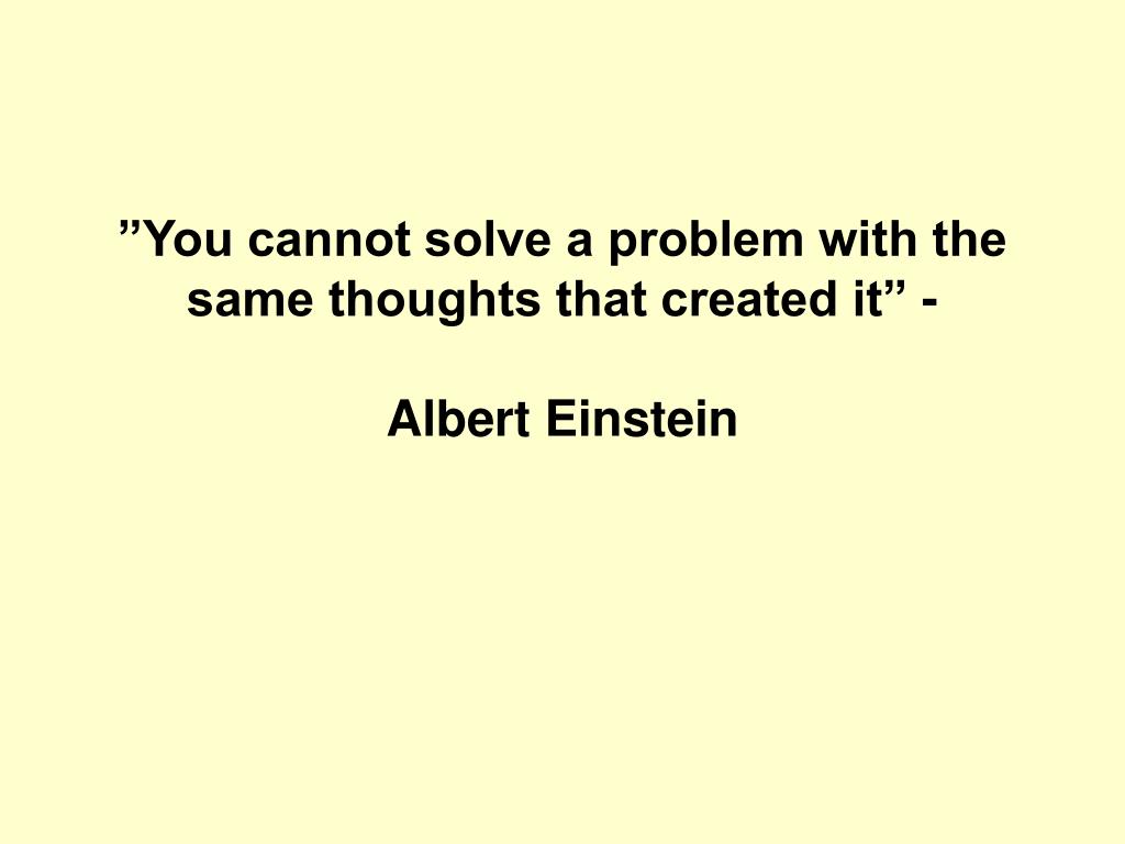 ”You cannot solve a problem with the same thoughts that created it” -Albert Einstein