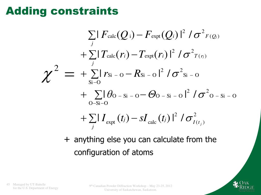 Adding constraints • anything else you can calculate from the configuration of atoms