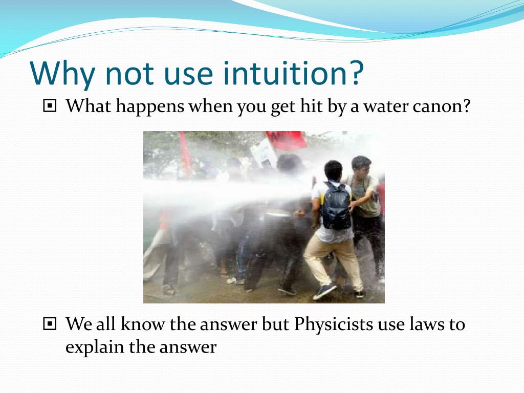 Why not use intuition? • What happens when you get hit by a water canon? • We all know the answer but Physicists use laws to explain the answer