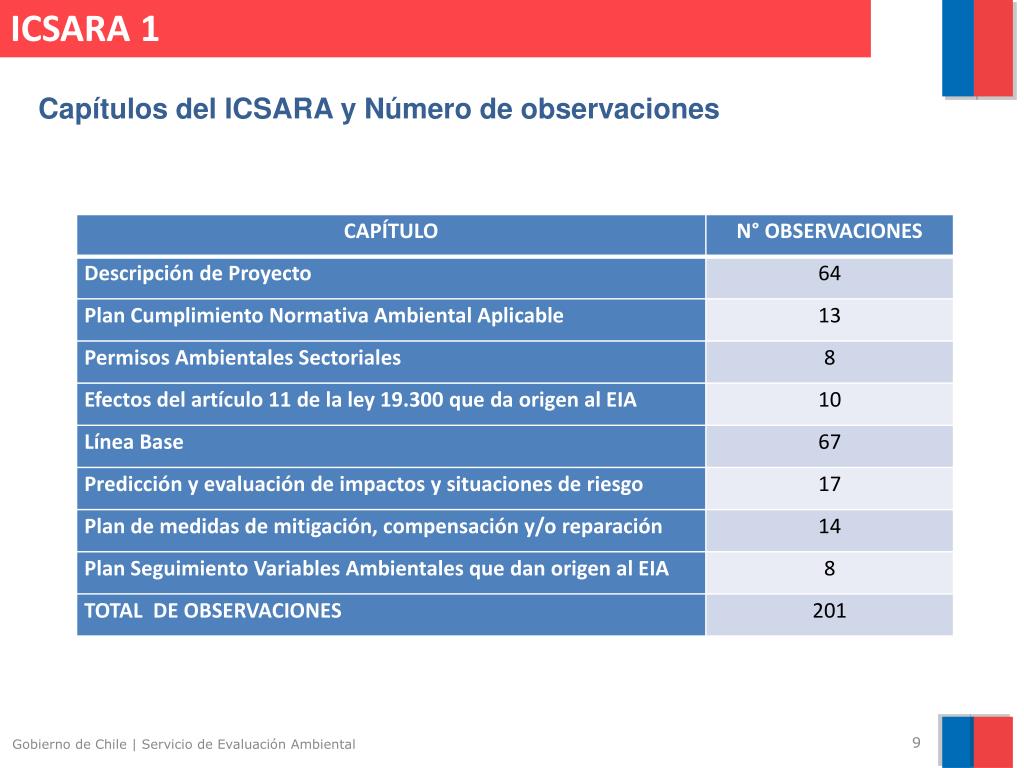 ICSARA 1 Capítulos del ICSARA y Número de observaciones Gobierno de Chile | Servicio de Evaluación Ambiental