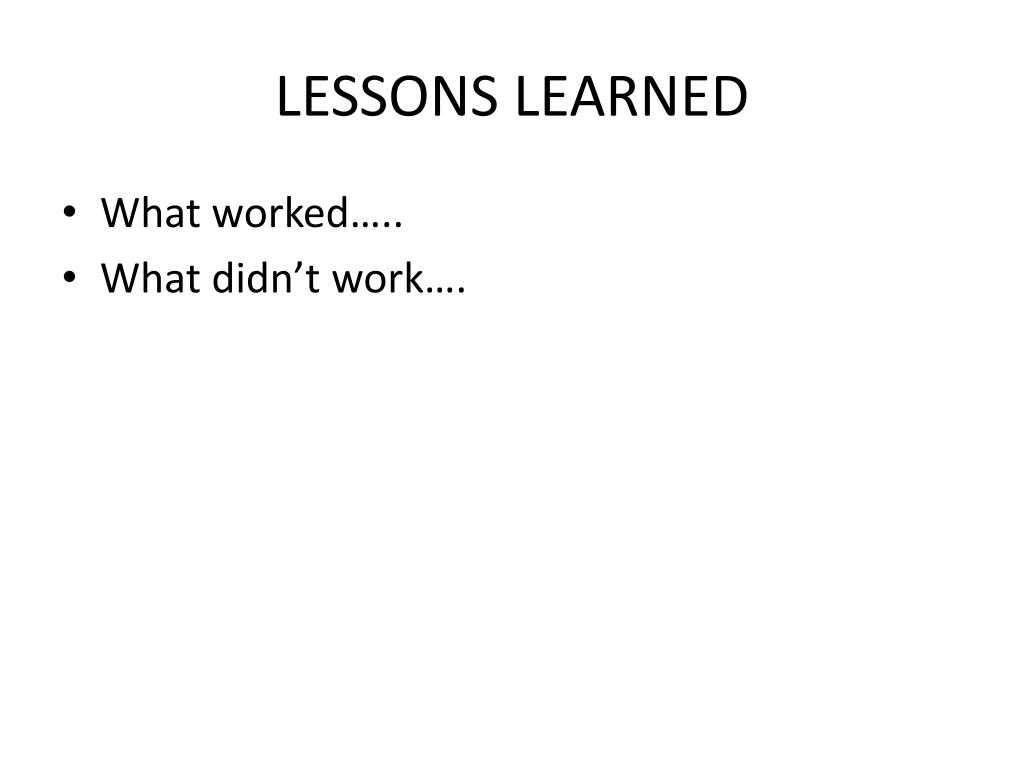LESSONS LEARNED • What worked….. • What didn’t work….