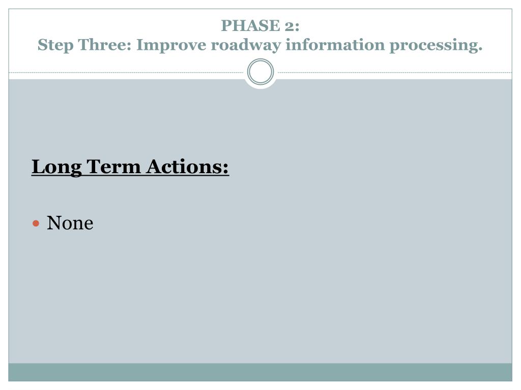 PHASE 2: Step Three: Improve roadway information processing. Long Term Actions: None