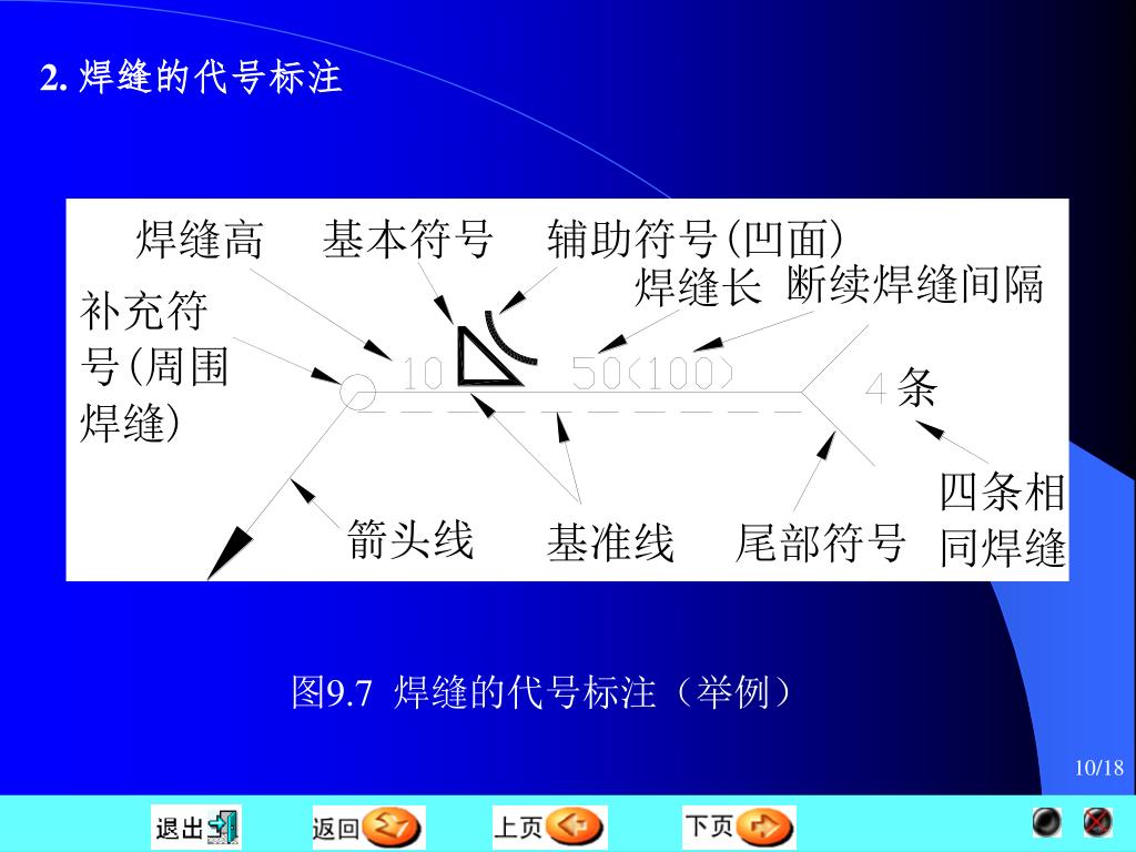 2. 焊缝的代号标注 图9.7 焊缝的代号标注(举例)
