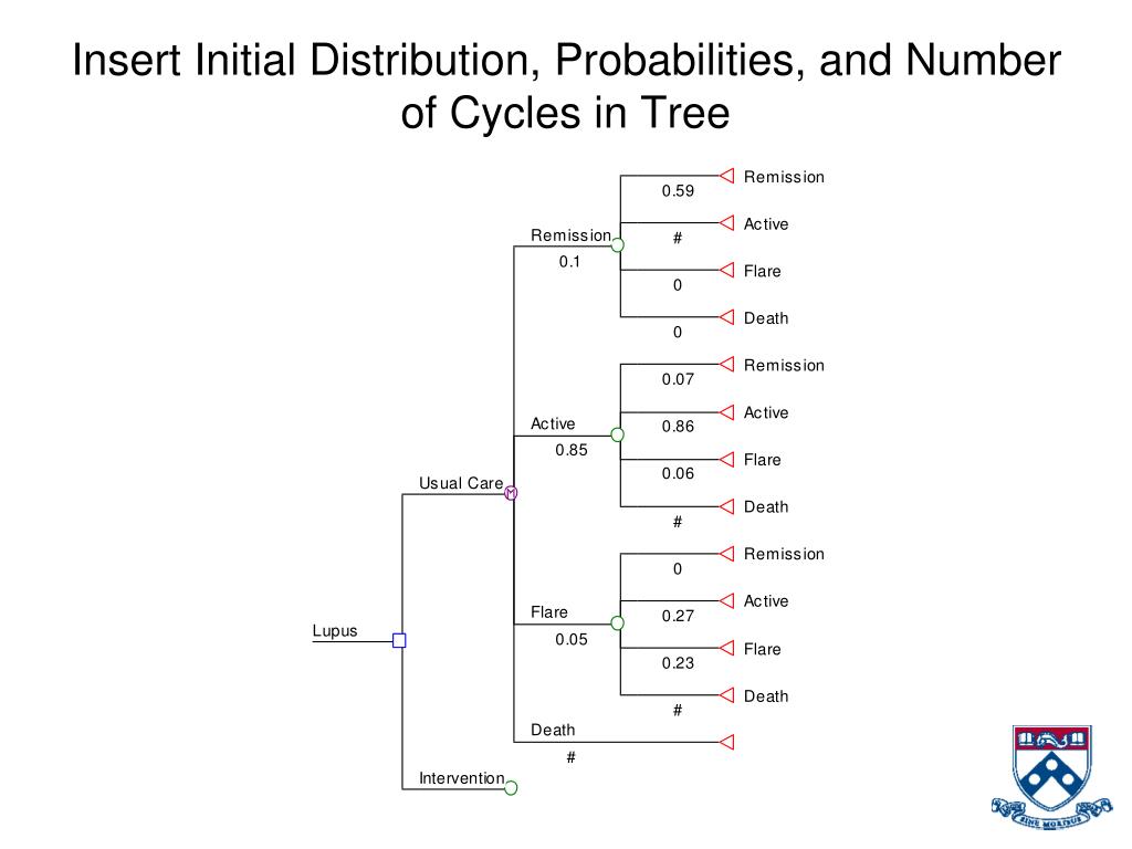 Step 2.C Identify an Initial Distribution of Patients Within States (II) • Alternatively, start everyone in one state, (e.g., to determine what will happen to patients who begin in remission, make probability of being in remission 1.0)