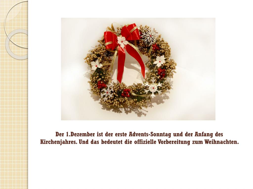 Der 1.Dezember istdererste Advents-Sonntag und derAnfang des Kirchenjahres. Und das bedeutet die offizielleVorbereitungzumWeihnachten.