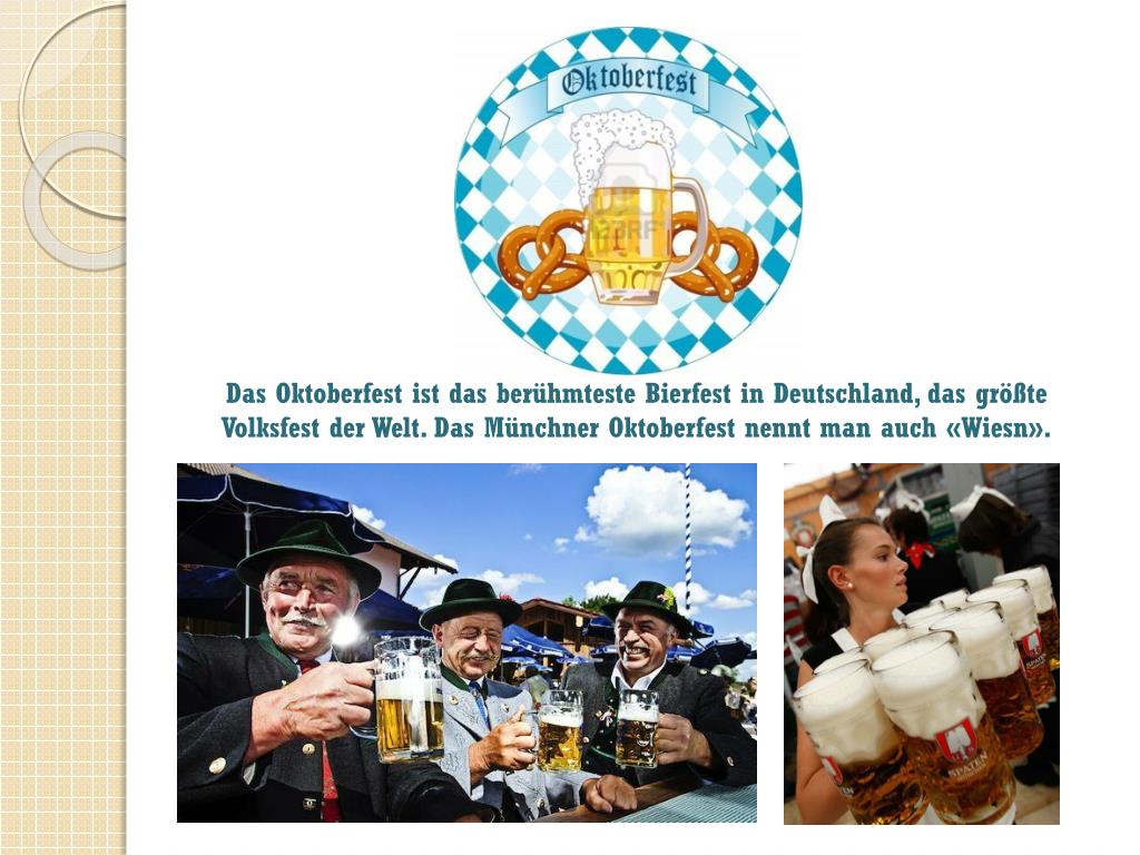 Das Oktoberfest ist das berühmtesteBierfest in Deutschland, das größteVolksfestderWelt.Das Münchner Oktoberfest nennt man auch «Wiesn».