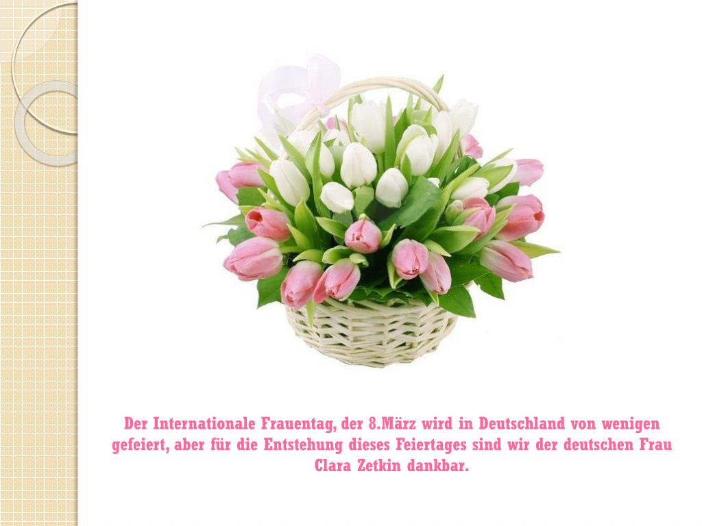 DerInternationaleFrauentag, der 8.März wird in Deutschland von wenigengefeiert, aberfür die Entstehung dieses Feiertagessindwirderdeutschen Frau Clara Zetkindankbar.