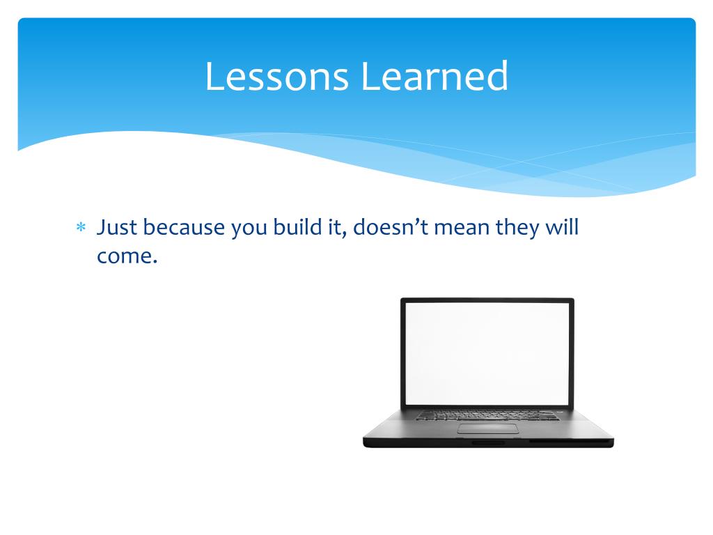 Lessons Learned Just because you build it, doesn’t mean they will come.