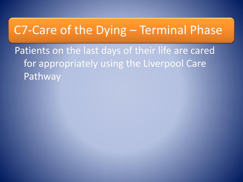Patients on the last days of their life are cared for appropriately using the Liverpool Care Pathway