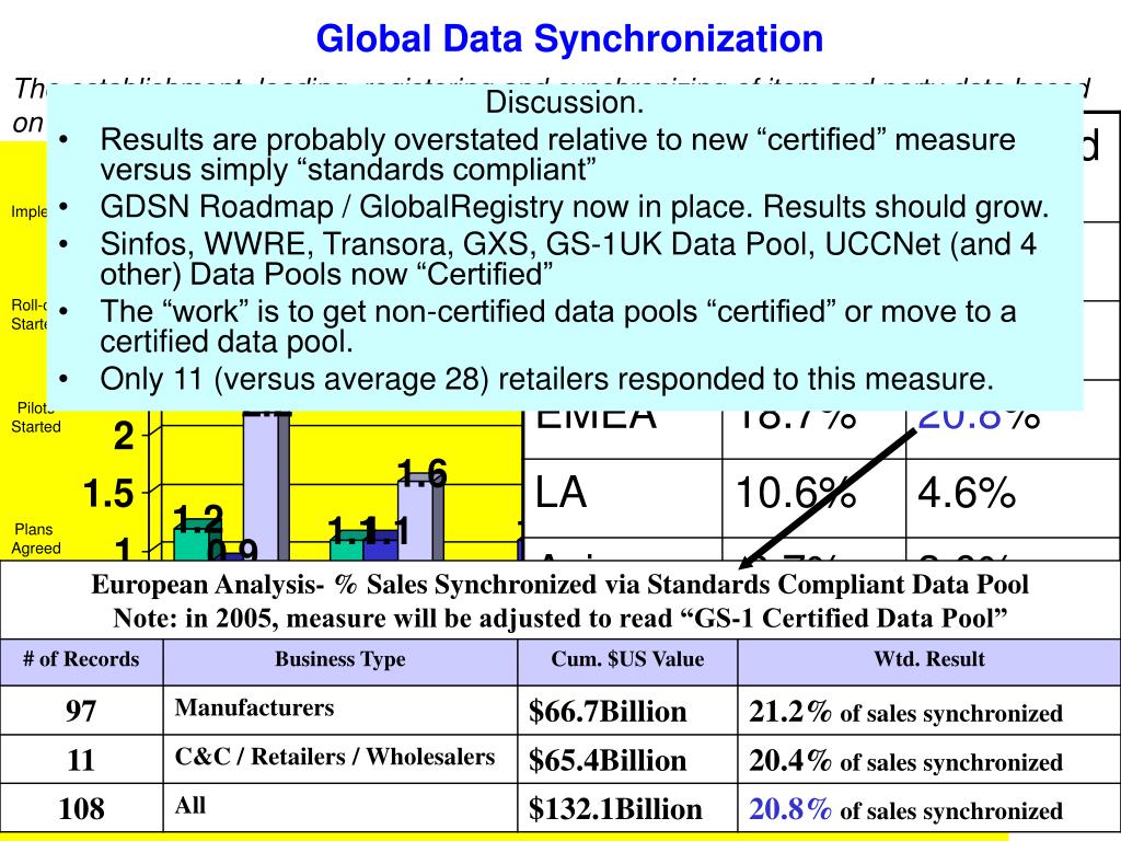 The Global ScorecardA World Wide Industry Approach to Track and Measure the Implementation of Standards and the Resultant Business Improvement • Hard Business Outputs • (KPIs like inventory Levels, out-of-stocks, order to delivery cycle time, service levels) • Implementation of Global Standards • (Foundational elements like barcodes, Electronic communication) • Implementation of Collaborative Best Practices • (like Category Management, Data Synchronization or CPFR)