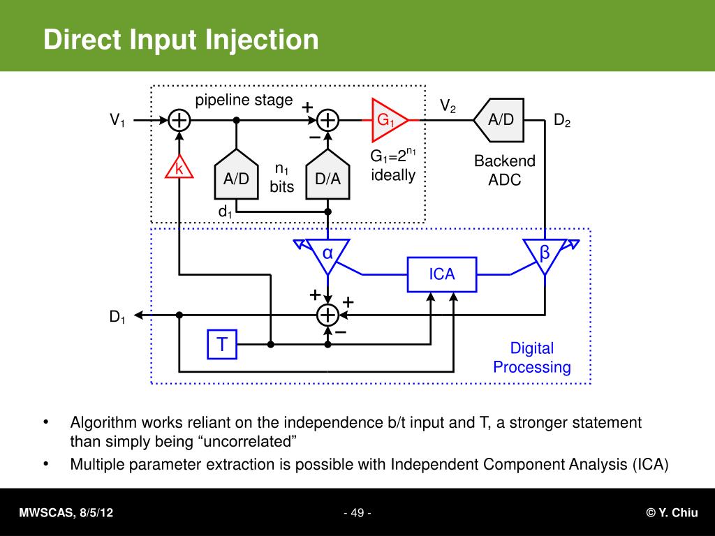 Direct Input Injection • Algorithm works reliant on the independence b/t input and T, a stronger statement than simply being “uncorrelated” • Multiple parameter extraction is possible with Independent Component Analysis (ICA)