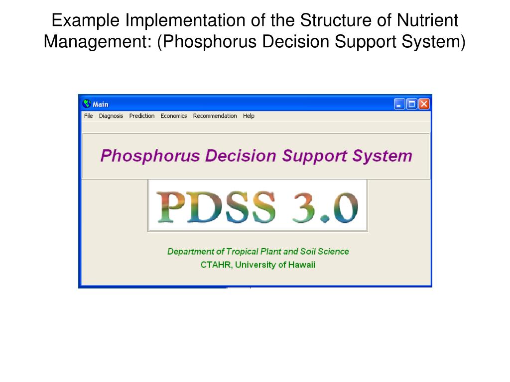 Example Implementation of the Structure of Nutrient Management: (Phosphorus Decision Support System)