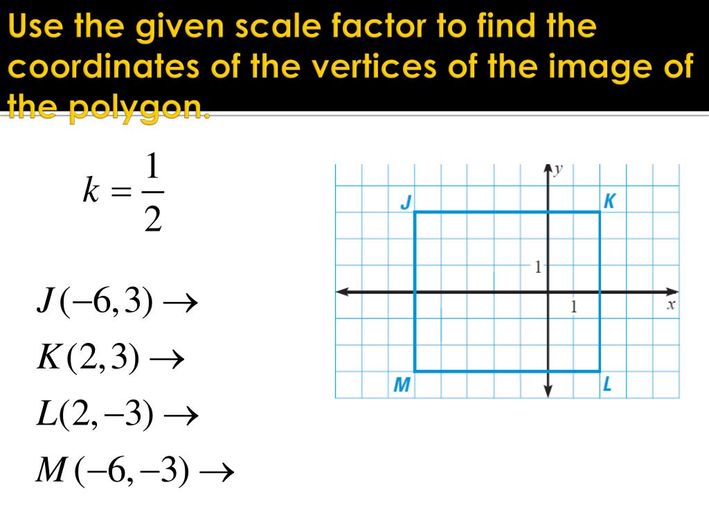 Use the given scale factor to find the coordinates of the vertices of the image of the polygon.