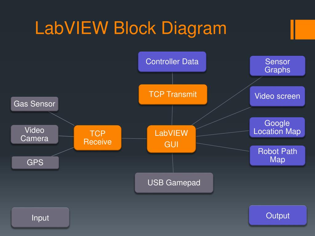 Operational Block Diagram Video Feed Controller Users GPS Wi-Fi Gas Sensors Motor Control LabVIEW GUI Robot Laptop