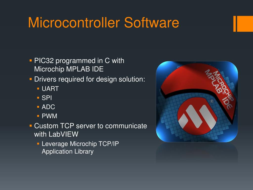 Microcontroller Software • PIC32 programmed in C with Microchip MPLAB IDE • Drivers required for design solution: • UART • SPI • ADC • PWM • Custom TCP server to communicate with LabVIEW • Leverage Microchip TCP/IP Application Library