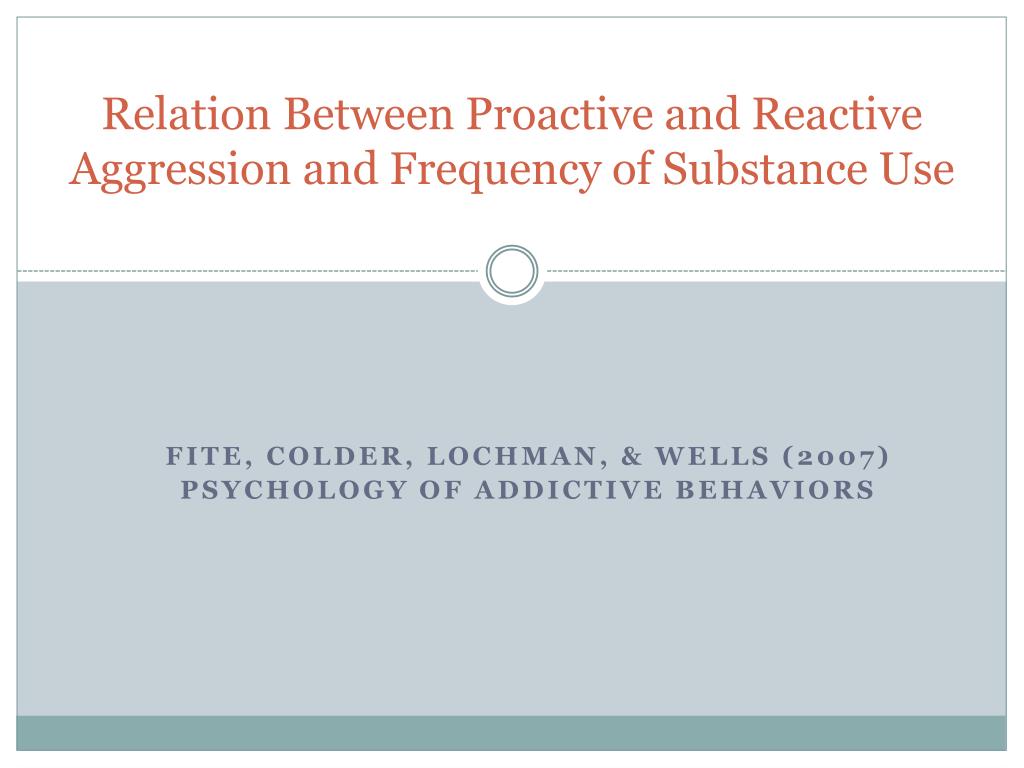Relation Between Proactive and Reactive Aggression and Frequency of Substance Use Fite, Colder, Lochman, & Wells (2007) Psychology of Addictive Behaviors