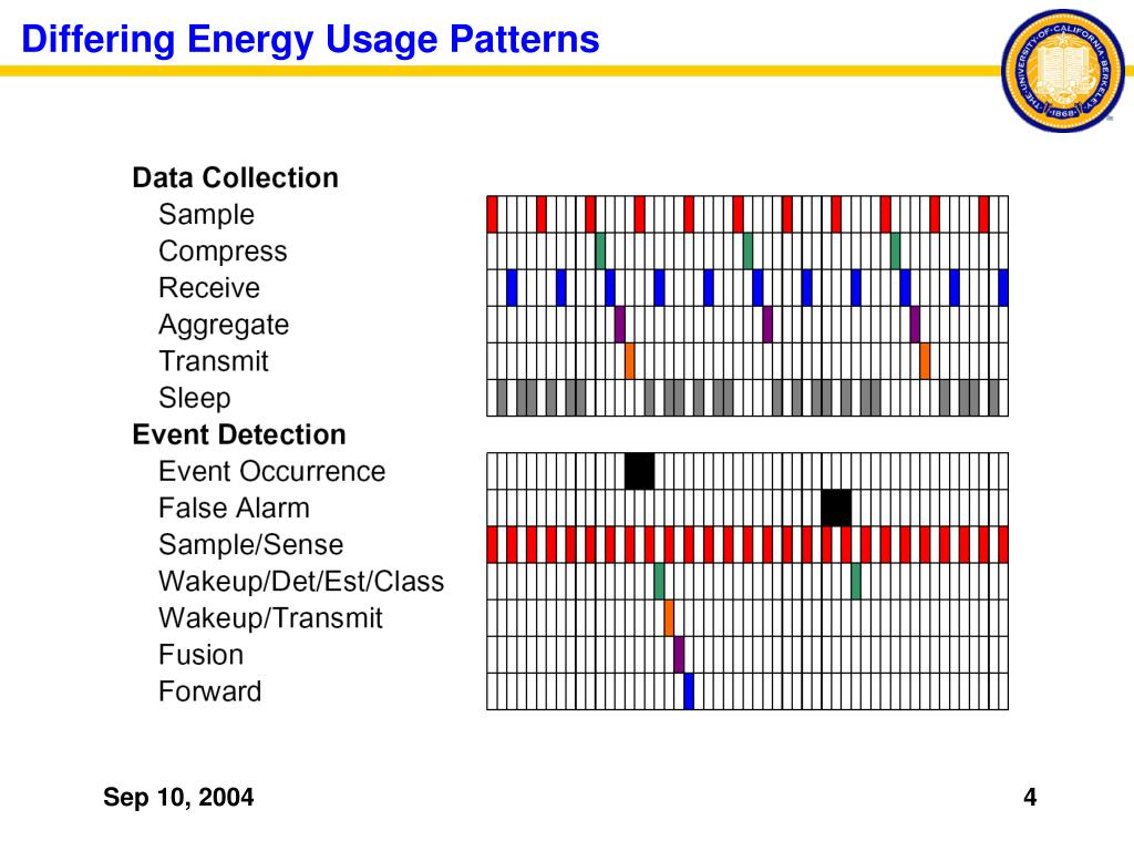 Data Collection Signal Reconstruction Reconstruction Fidelity Data-centric Data-driven Messaging Periodic Sampling High-latency Acceptable Periodic Traffic Store & Forward Messaging Aggregation Phenomena Omnichronic Absolute Global Time Event Detection Signal Detection Detection and False Alarm Rates Meta-data Centric (e.g. statistics) Decision-driven Messaging Continuous “Passive Vigilance” Low-latency Required Bursty Traffic Real-time Messaging Fusion, Classification Rare, Random, Short-lived Relative Local Time Motivation: Data Collection vs. Event Detection vs.