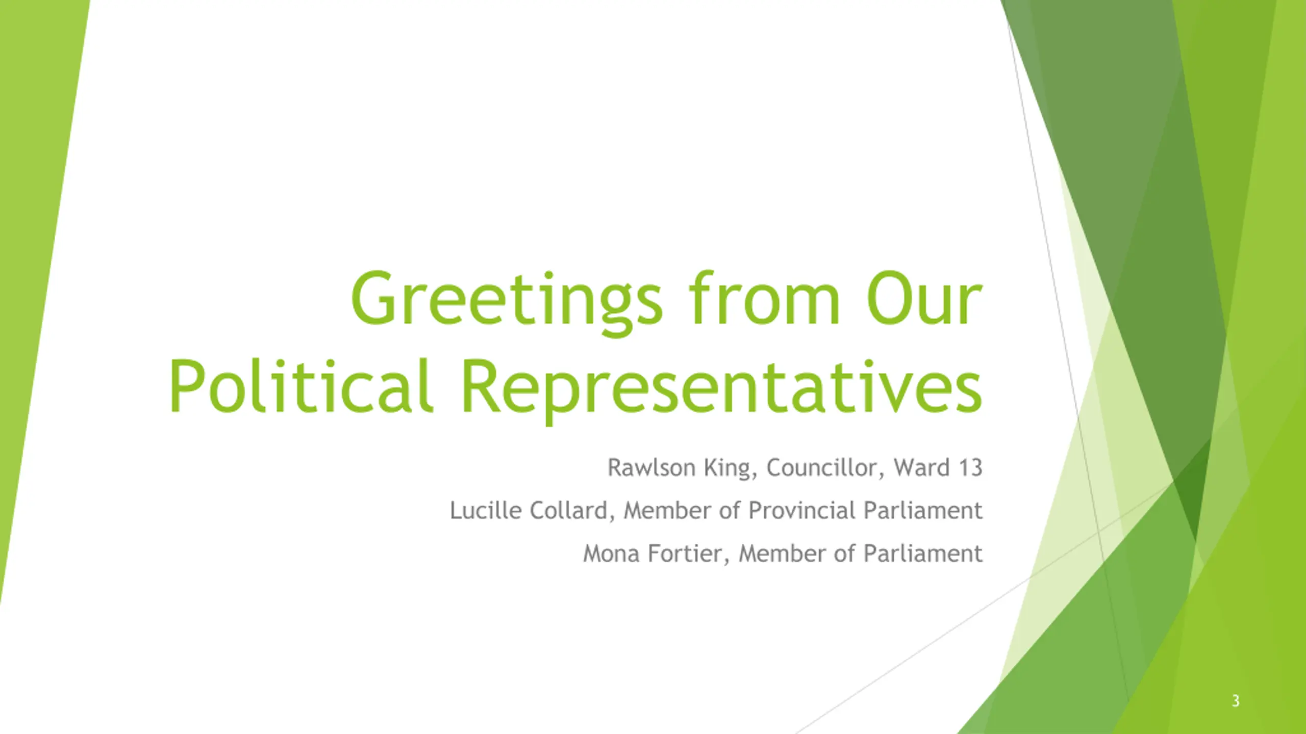 Our Agenda ► Welcome ► 2 minutes ► Political Representatives Greetings ► 15 minutes ► Committee Activities ► 20 minutes + Q&A ► MPCA Business ► 10 minutes ► President’s Remarks ► 10 minutes This meeting is being recorded 2