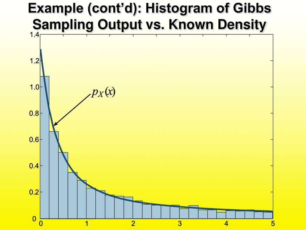 Example (cont’d): Histogram of Gibbs Sampling Output vs. Known Density