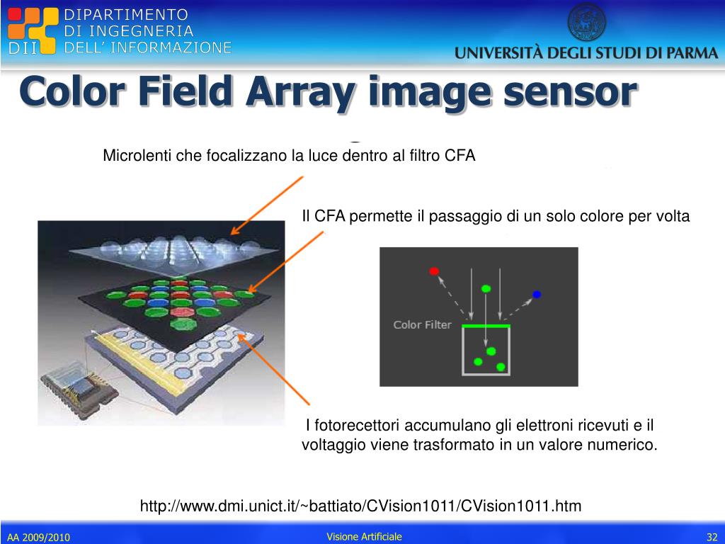 CFA image sensor http://www.dmi.unict.it/~battiato/CVision1011/CVision1011.htm Visione Artificiale
