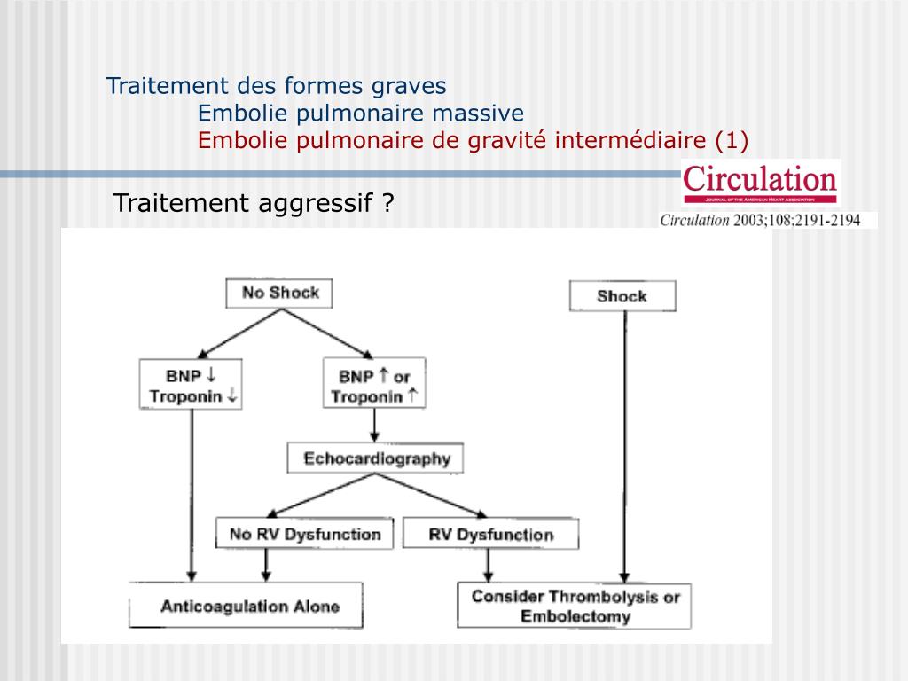 Traitement des formes graves Embolie pulmonaire massiveEmbolie pulmonaire de gravité intermédiaire (7)