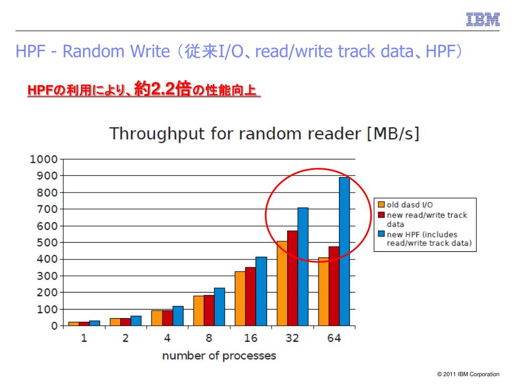 HPF - Random Write (従来I/O、read/write track data、HPF) HPFの利用により、約2.2倍の性能向上