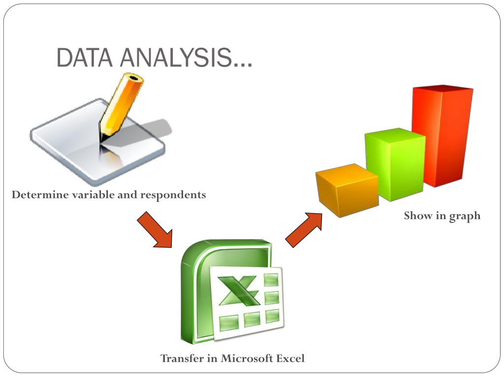 DATA ANALYSIS… Determine variable and respondents Show in graph Transfer in Microsoft Excel