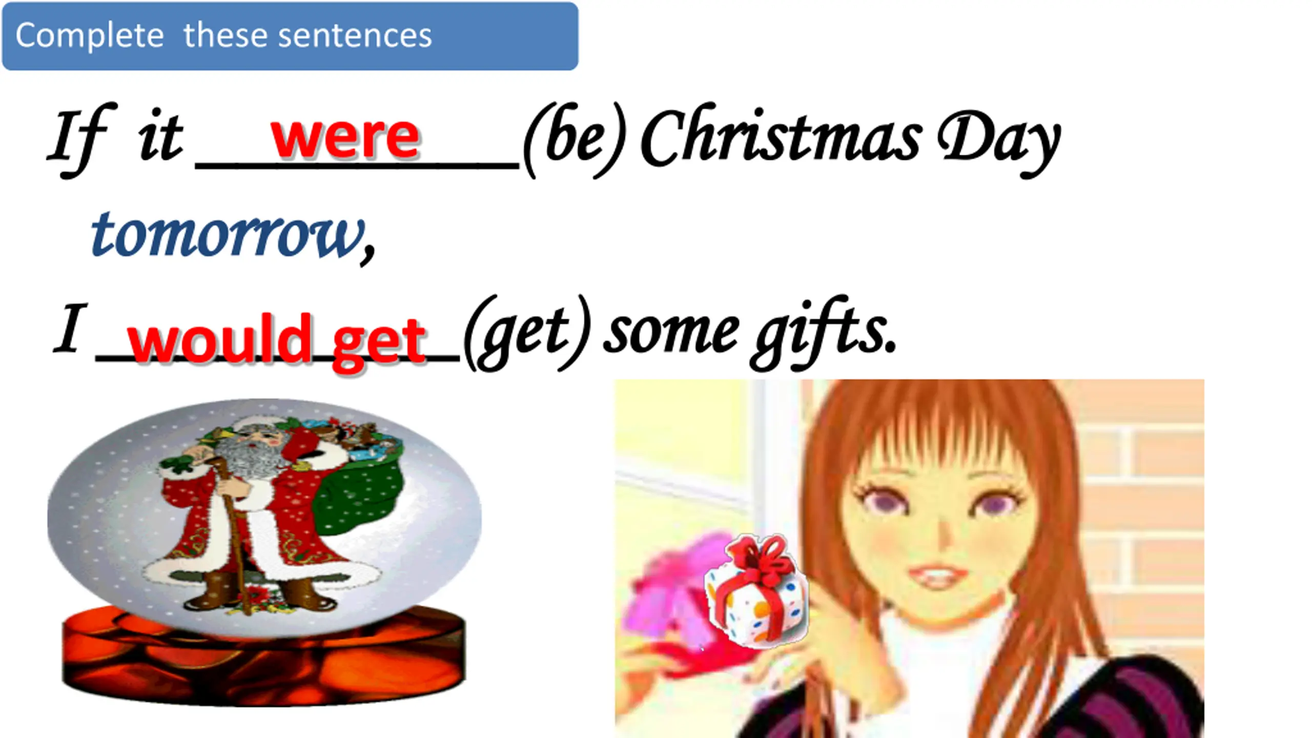 Complete these sentences If it If it ________(be) Christmas Day ________(be) Christmas Day tomorrow tomorrow, , I I _________(get) some gifts. _________(get) some gifts. would get were
