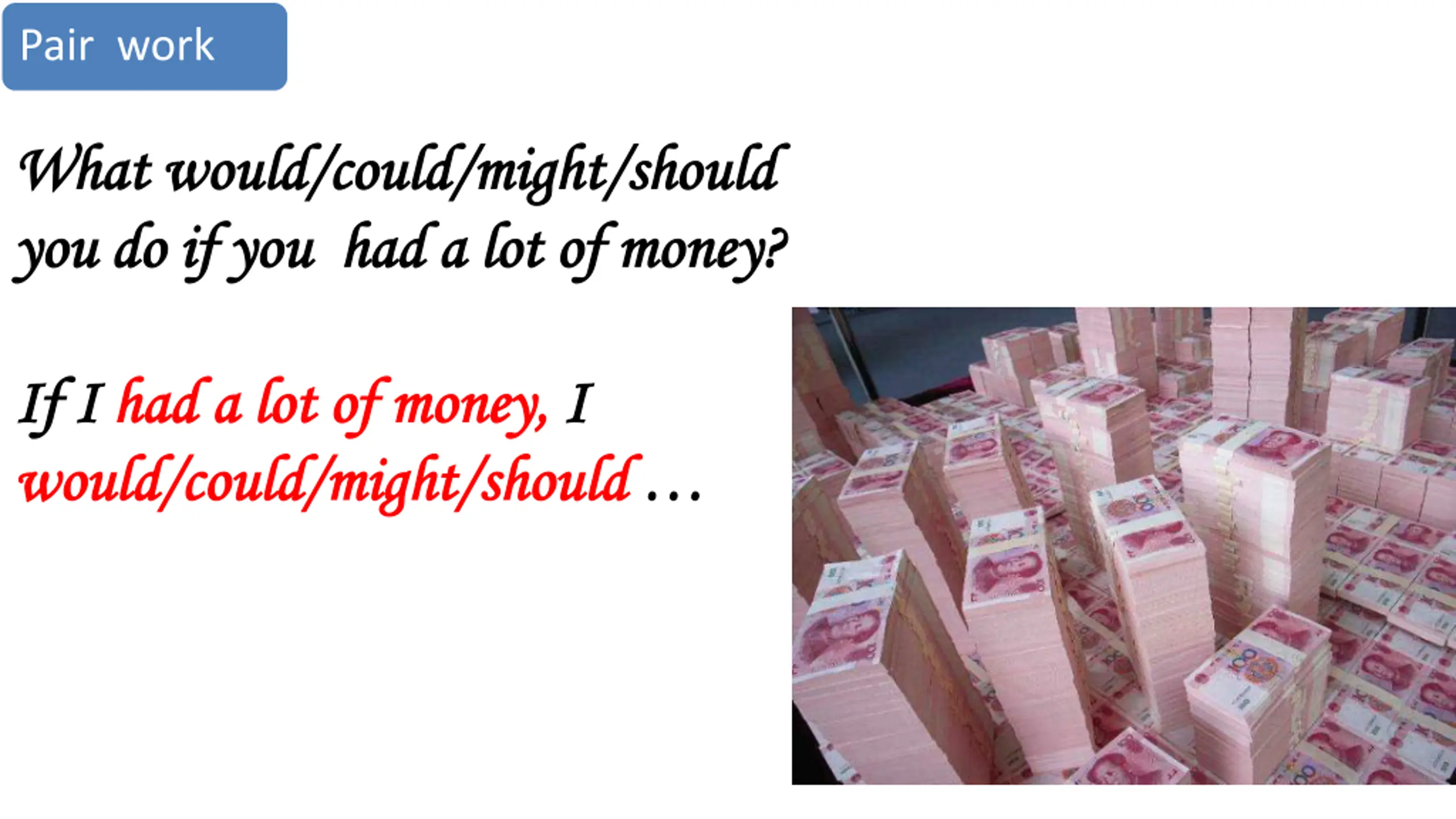 Pair work What would/could/might/should What would/could/might/should you do if you had a lot of money? you do if you had a lot of money? If I If I had a lot of money, had a lot of money, I I would/could/might/should would/could/might/should … …