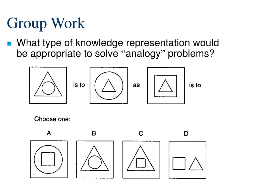 Group Work • What type of knowledge representation would be appropriate to solve “analogy” problems?