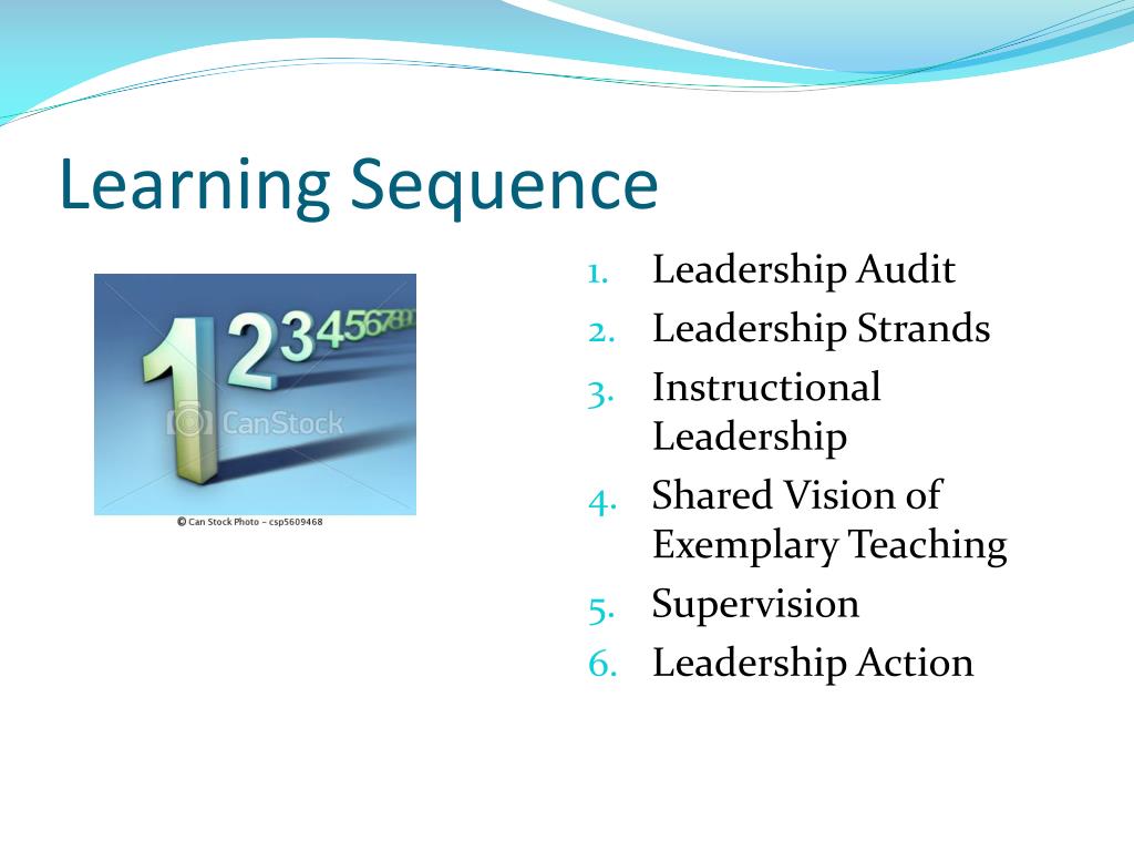 Learning Sequence • Leadership Audit • Leadership Strands • Instructional Leadership • Shared Vision of Exemplary Teaching • Supervision • Leadership Action