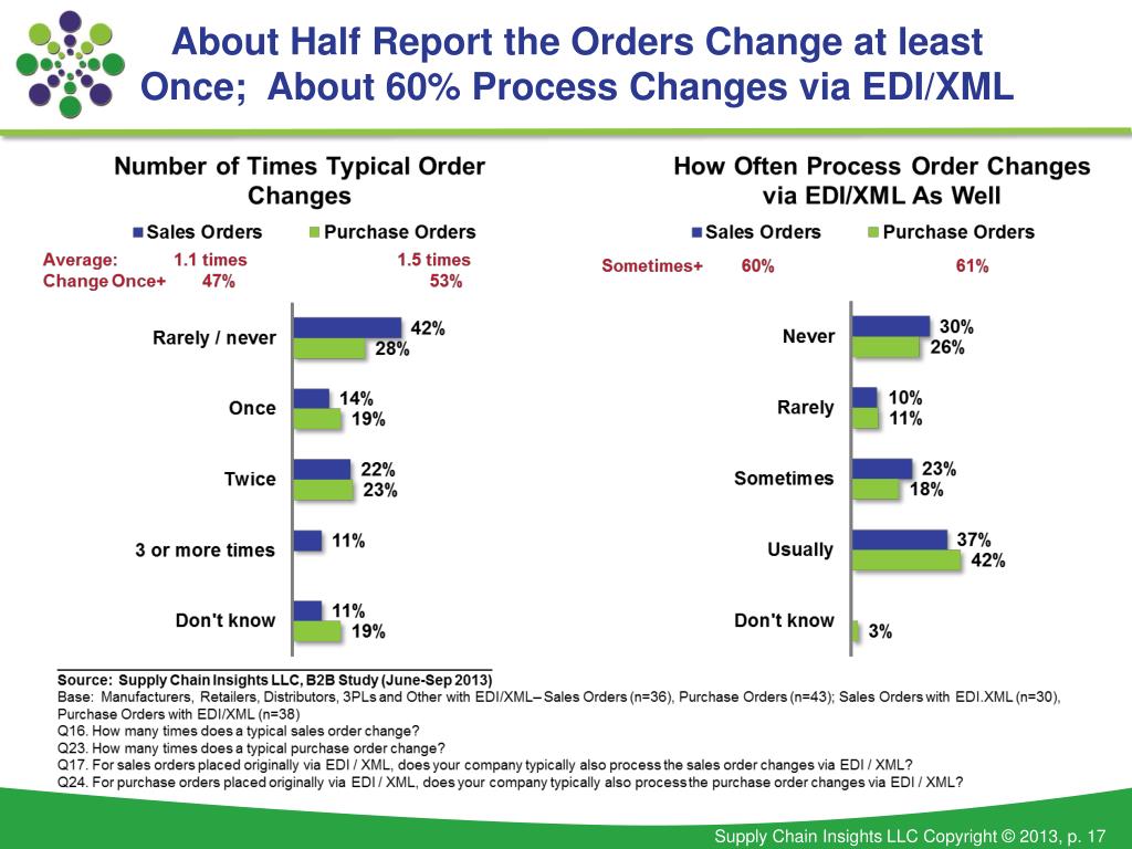 About Half Report the Orders Change at least Once; About 60% Process Changes via EDI/XML