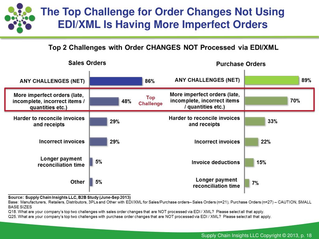 The Top Challenge for Order Changes Not Using EDI/XML Is Having More Imperfect Orders