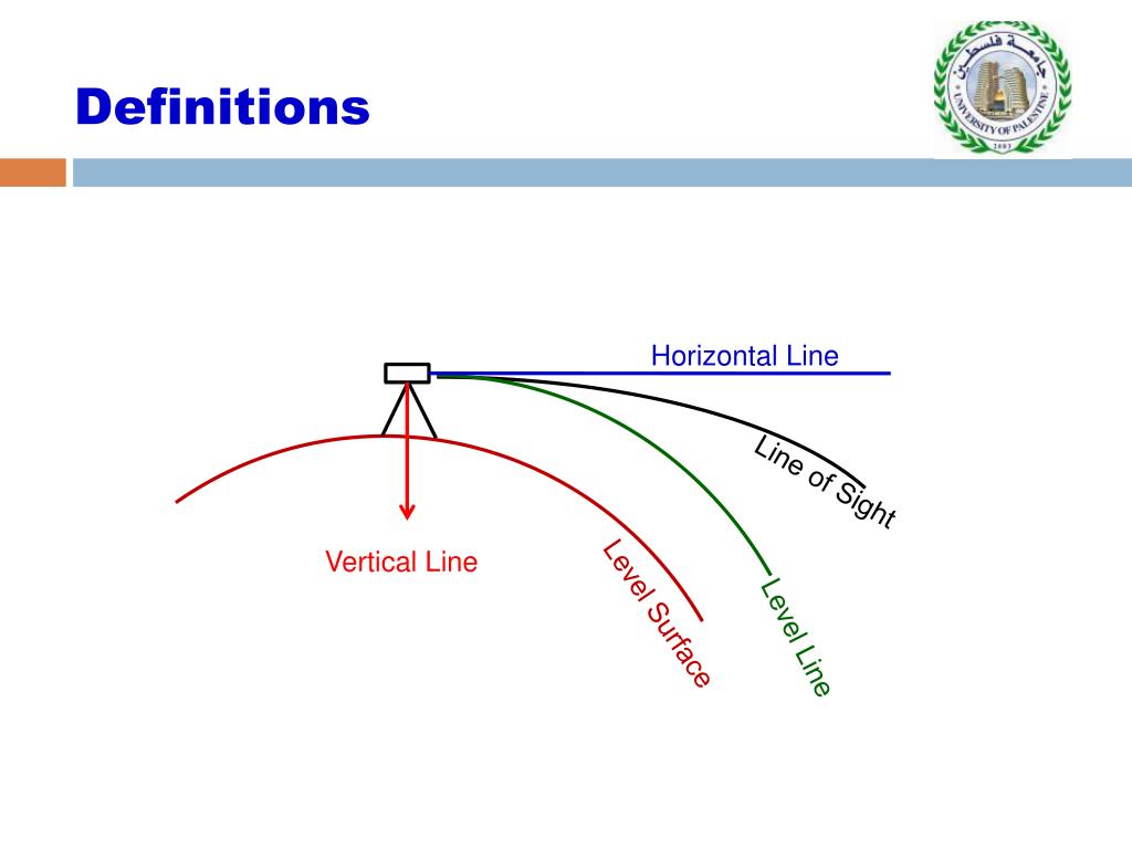 Definitions Horizontal Line Line of Sight Vertical Line Level Surface Level Line