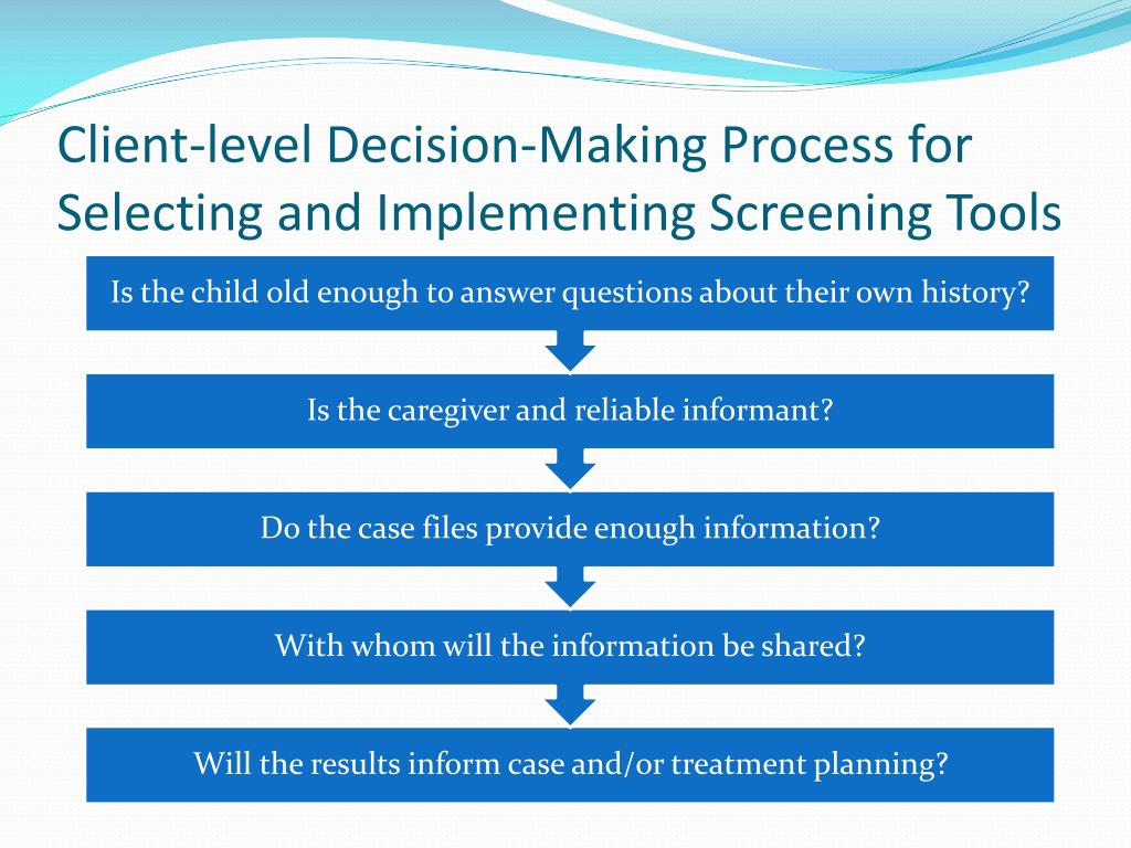 Client-level Decision-Making Process for Selecting and Implementing Screening Tools
