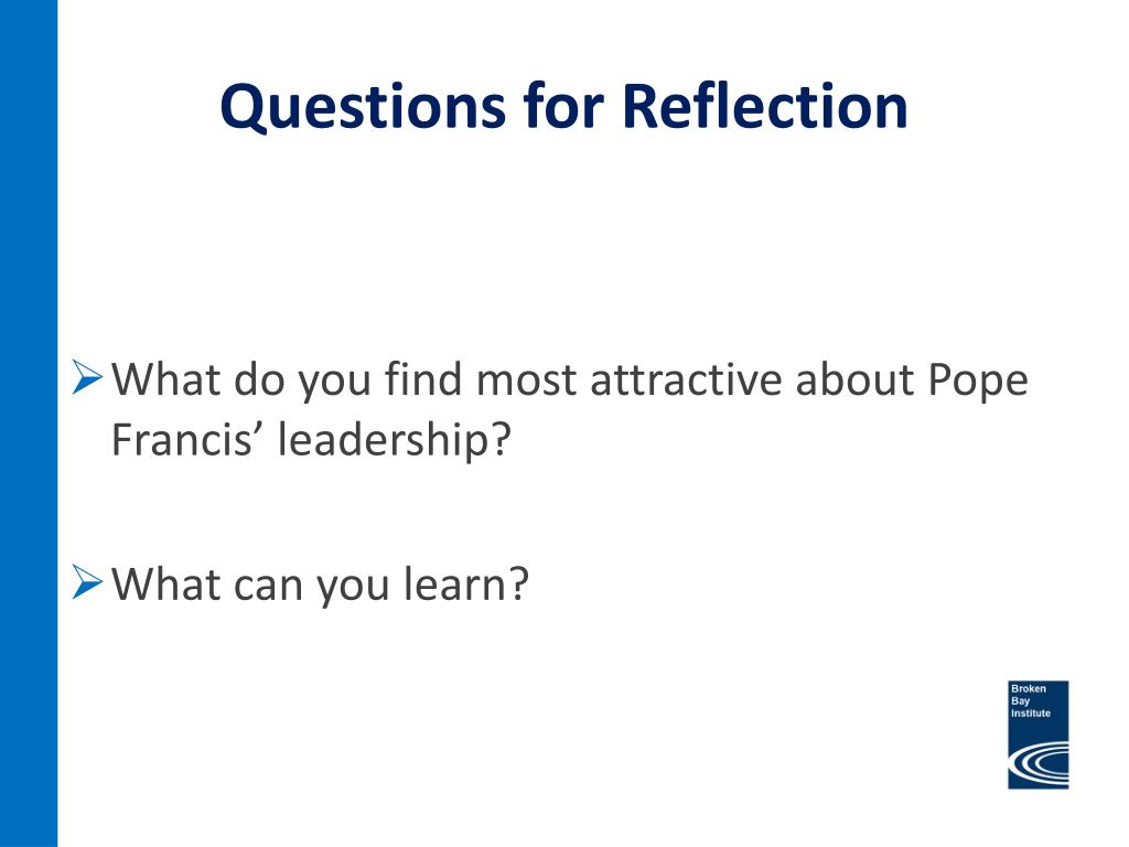 Questions for Reflection • What do you find most attractive about Pope Francis’ leadership? • What can you learn?