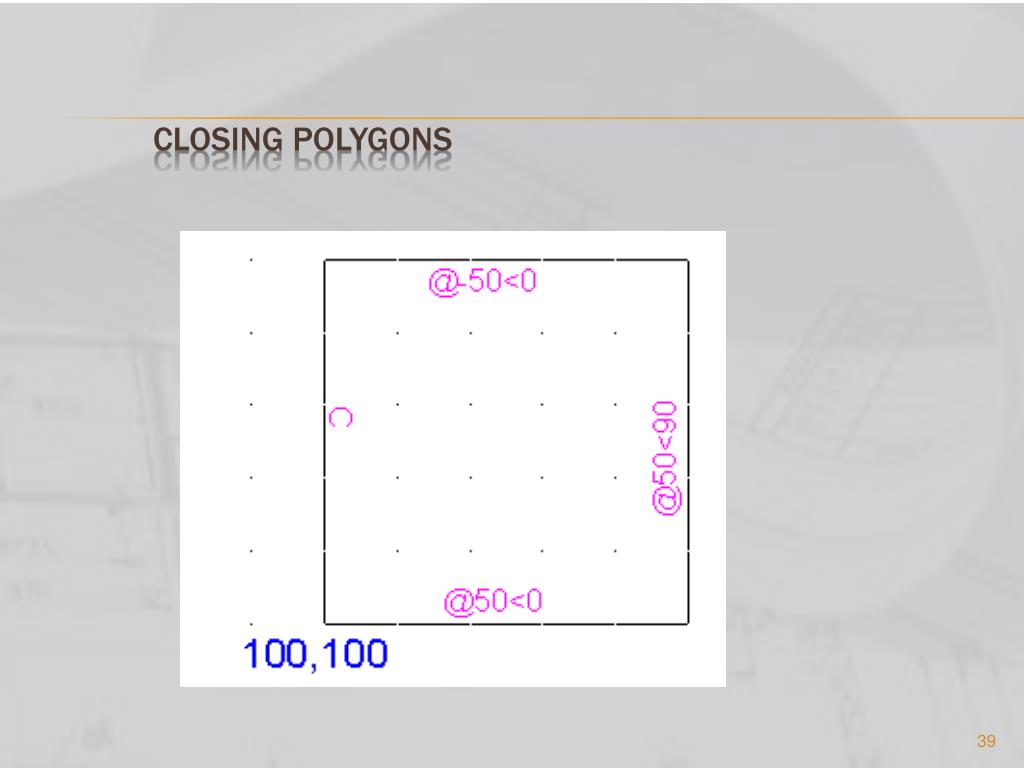 Polar: @dist < angle • This system makes use of the distance and the direction angle of the new point away from the previous point. 100 unit away from starting point at an angle of 45o 100 unit away from starting point, at 0o angle Starting point