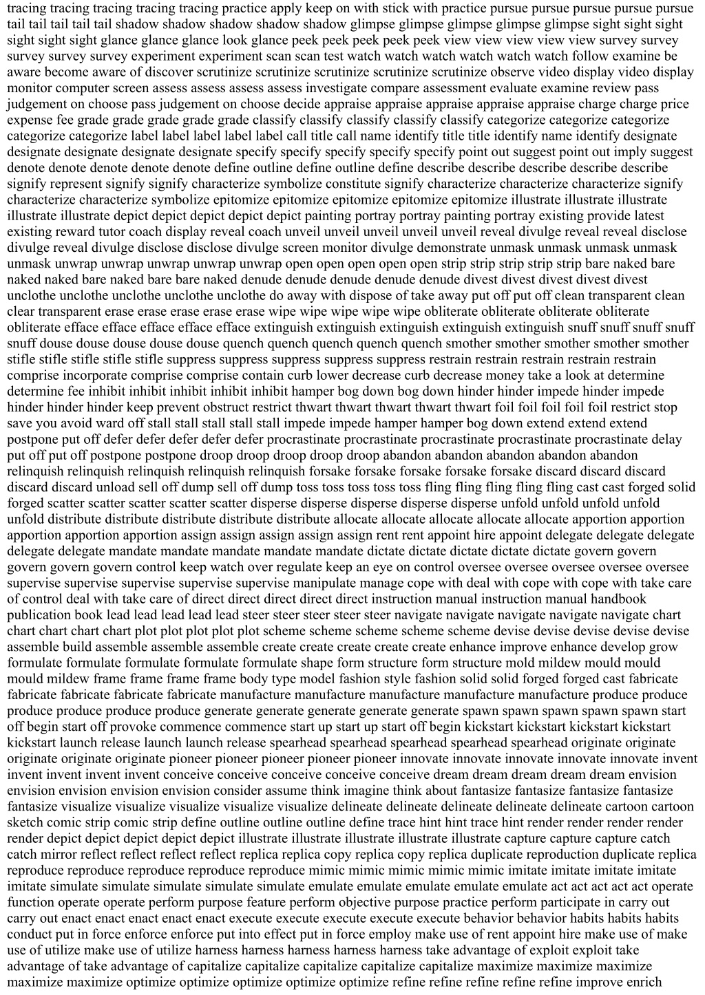 tracing tracing tracing tracing tracing practice apply keep on with stick with practice pursue pursue pursue pursue pursue tail tail tail tail tail shadow shadow shadow shadow shadow glimpse glimpse glimpse glimpse glimpse sight sight sight sight sight sight glance glance glance look glance peek peek peek peek peek view view view view view survey survey survey survey survey experiment experiment scan scan test watch watch watch watch watch watch follow examine be aware become aware of discover scrutinize scrutinize scrutinize scrutinize scrutinize observe video display video display monitor computer screen assess assess assess assess investigate compare assessment evaluate examine review pass judgement on choose pass judgement on choose decide appraise appraise appraise appraise appraise charge charge price expense fee grade grade grade grade grade classify classify classify classify classify categorize categorize categorize categorize categorize label label label label label call title call name identify title title identify name identify designate designate designate designate designate specify specify specify specify specify point out suggest point out imply suggest denote denote denote denote denote define outline define outline define describe describe describe describe describe signify represent signify signify characterize symbolize constitute signify characterize characterize characterize signify characterize characterize symbolize epitomize epitomize epitomize epitomize epitomize illustrate illustrate illustrate illustrate illustrate depict depict depict depict depict painting portray portray painting portray existing provide latest existing reward tutor coach display reveal coach unveil unveil unveil unveil unveil reveal divulge reveal reveal disclose divulge reveal divulge disclose disclose divulge screen monitor divulge demonstrate unmask unmask unmask unmask unmask unwrap unwrap unwrap unwrap unwrap open open open open open strip strip strip strip strip bare naked bare naked naked bare naked bare bare naked denude denude denude denude denude divest divest divest divest divest unclothe unclothe unclothe unclothe unclothe do away with dispose of take away put off put off clean transparent clean clear transparent erase erase erase erase erase wipe wipe wipe wipe wipe obliterate obliterate obliterate obliterate obliterate efface efface efface efface efface extinguish extinguish extinguish extinguish extinguish snuff snuff snuff snuff snuff douse douse douse douse douse quench quench quench quench quench smother smother smother smother smother stifle stifle stifle stifle stifle suppress suppress suppress suppress suppress restrain restrain restrain restrain restrain comprise incorporate comprise comprise contain curb lower decrease curb decrease money take a look at determine determine fee inhibit inhibit inhibit inhibit inhibit hamper bog down bog down hinder hinder impede hinder impede hinder hinder hinder keep prevent obstruct restrict thwart thwart thwart thwart thwart foil foil foil foil foil restrict stop save you avoid ward off stall stall stall stall stall impede impede hamper hamper bog down extend extend extend postpone put off defer defer defer defer defer procrastinate procrastinate procrastinate procrastinate procrastinate delay put off put off postpone postpone droop droop droop droop droop abandon abandon abandon abandon abandon relinquish relinquish relinquish relinquish relinquish forsake forsake forsake forsake forsake discard discard discard discard discard unload sell off dump sell off dump toss toss toss toss toss fling fling fling fling fling cast cast forged solid forged scatter scatter scatter scatter scatter disperse disperse disperse disperse disperse unfold unfold unfold unfold unfold distribute distribute distribute distribute distribute allocate allocate allocate allocate allocate apportion apportion apportion apportion apportion assign assign assign assign assign rent rent appoint hire appoint delegate delegate delegate delegate delegate mandate mandate mandate mandate mandate dictate dictate dictate dictate dictate govern govern govern govern govern control keep watch over regulate keep an eye on control oversee oversee oversee oversee oversee supervise supervise supervise supervise supervise manipulate manage cope with deal with cope with cope with take care of control deal with take care of direct direct direct direct direct instruction manual instruction manual handbook publication book lead lead lead lead lead steer steer steer steer steer navigate navigate navigate navigate navigate chart chart chart chart chart plot plot plot plot plot scheme scheme scheme scheme scheme devise devise devise devise devise assemble build assemble assemble assemble create create create create create enhance improve enhance develop grow formulate formulate formulate formulate formulate shape form structure form structure mold mildew mould mould mould mildew frame frame frame frame body type model fashion style fashion solid solid forged forged cast fabricate fabricate fabricate fabricate fabricate manufacture manufacture manufacture manufacture manufacture produce produce produce produce produce produce generate generate generate generate generate spawn spawn spawn spawn spawn start off begin start off provoke commence commence start up start up start off begin kickstart kickstart kickstart kickstart kickstart launch release launch launch release spearhead spearhead spearhead spearhead spearhead originate originate originate originate originate pioneer pioneer pioneer pioneer pioneer innovate innovate innovate innovate innovate invent invent invent invent invent conceive conceive conceive conceive conceive dream dream dream dream dream envision envision envision envision envision consider assume think imagine think about fantasize fantasize fantasize fantasize fantasize visualize visualize visualize visualize visualize delineate delineate delineate delineate delin