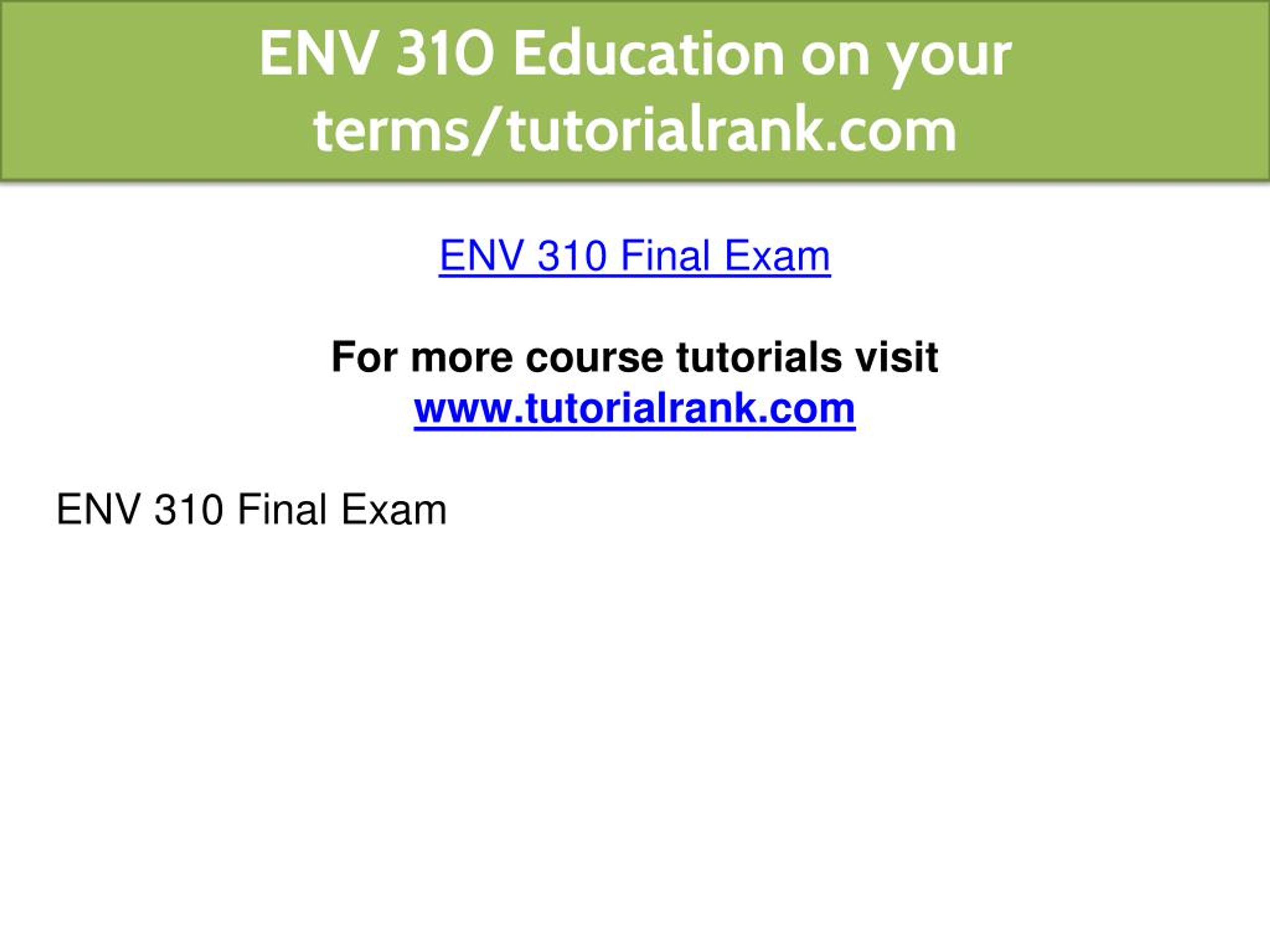 ENV 310 Education on your terms/tutorialrank.com • ENV 310 Final Exam • For more course tutorials visit • www.tutorialrank.com • ENV 310 Final Exam
