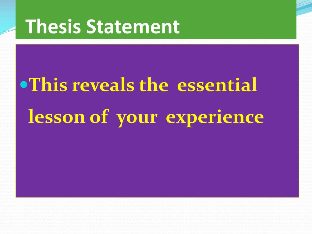Thesis Statement • This reveals the essential lesson of your experience