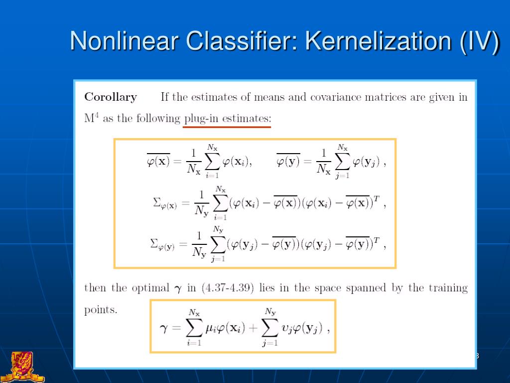 Nonlinear Classifier: Kernelization (IV) Dept. of C.S.E., C.U.H.K.