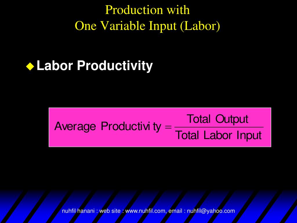 Production withOne Variable Input (Labor) • Labor Productivity nuhfil hanani : web site : www.nuhfil.com, email : nuhfil@yahoo.com