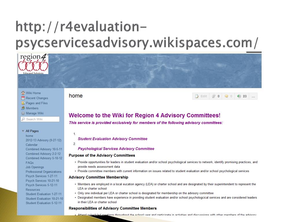 Purpose The purpose for Region 4 sponsored advisory committees is to receive current national, state, regional, and local information on issues related to student evaluation, identify trends and issues affecting your district/campus, provide feedback on services, and network with other professionals.