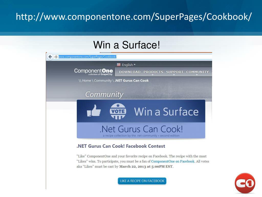 http://www.componentone.com/SuperPages/Cookbook/ Win a Surface!