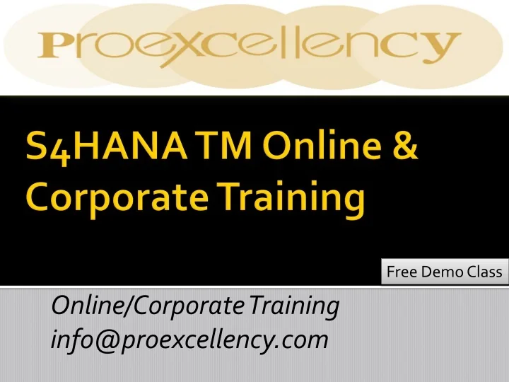 Online/Corporate Training info@proexcellency.com S4HANA TM Online & Corporate Training Free Demo Class